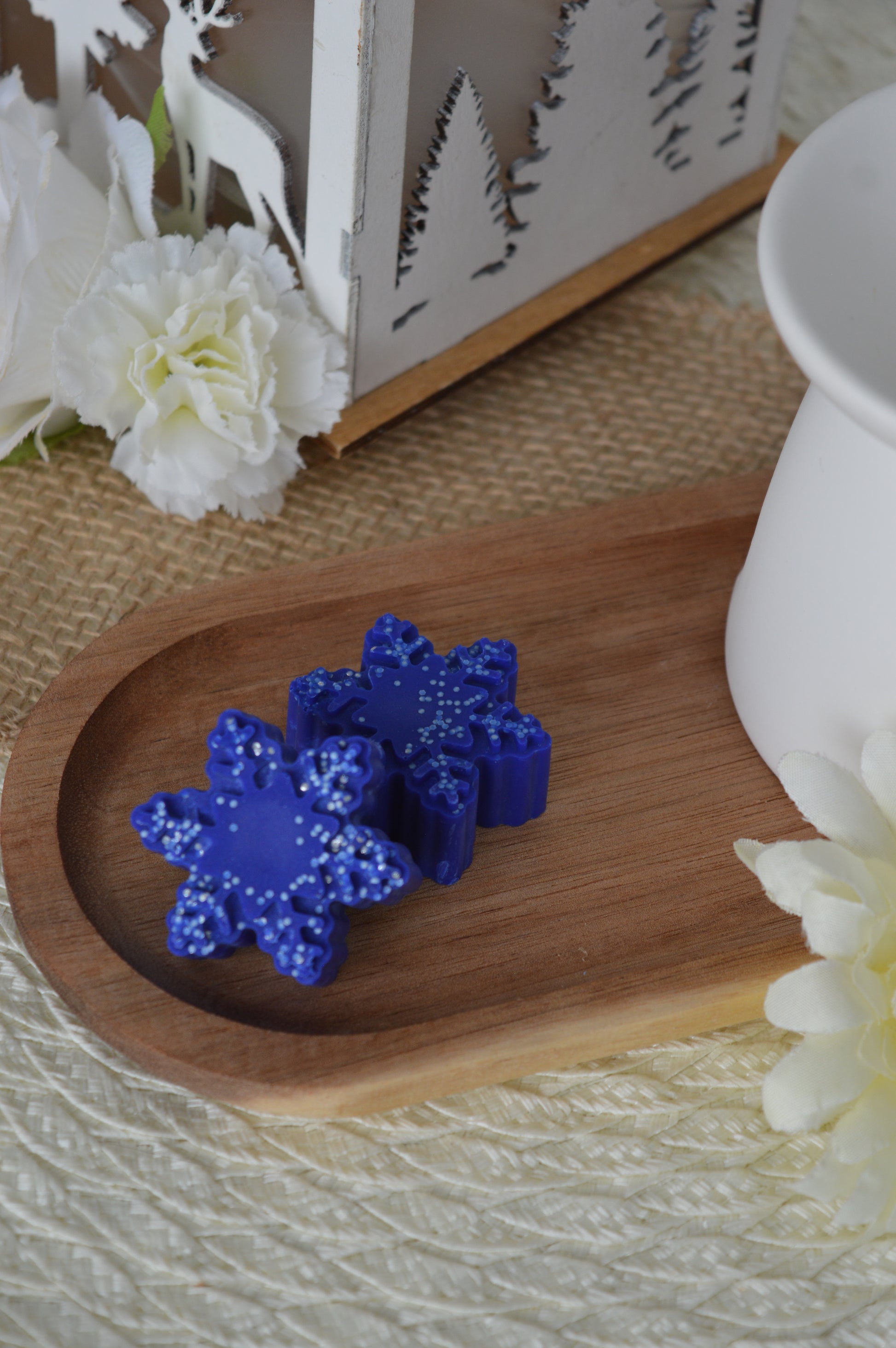 Description : 1 fondant parfumé individuel avec parfum de Grasse, en cire de soja, sans CMR et sans Phtalates. Tons bleus nuit avec paillettes biodégradables, sans plastique. Fragrance City of Starlight (Bulles festives, notes fruitées). Le fondant est réalisé par mes soins en France. Notes de tête : orange et fleurs blanches / Notes de cœur : fruit rouge / Notes de fond : caramel et fleur d'oranger.
